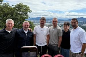 体育资讯09月13日讯 鲁尼赴韩国参加传奇赛,今日鲁尼晒出与众多传奇球星在首尔塔的合影。