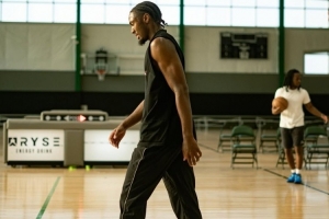 在训练结束后,马克西还尝试了大风车和胯下换手扣篮。