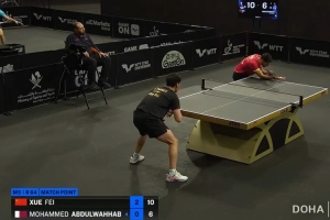 WTT多哈球星挑战赛:薛飞3-0战胜阿卜杜勒瓦哈卜,晋级男单32强