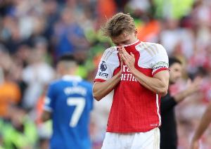 在英超第2轮,厄德高就因右肩受伤在上半场被换下,这次他受伤的同样是右肩。