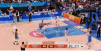 慢镜头显示焦海龙是有碰到周琦的头顶