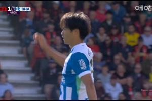 体育资讯09月13日讯 英超第4轮,伯恩茅斯vs布莱顿。比赛第48分钟,明特助攻,三笘薰后点头球破门,布莱顿1-1扳平伯恩茅斯。