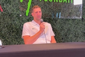 体育资讯9月14日讯 今日独行侠名宿诺维茨基的基金会举办了第七届名人网球赛,诺维茨基在新闻发布会上谈到了独行侠状元弗拉格。