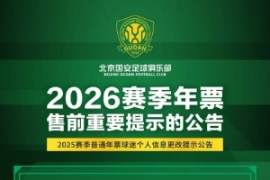 尊敬的球迷朋友,大家好!俱乐部将于春节假期后启动2026赛季年票发售工作。为了方便2025赛季已购年票球迷进行原座位续购或优先选座,请仔细阅读图片中的重要提示内容