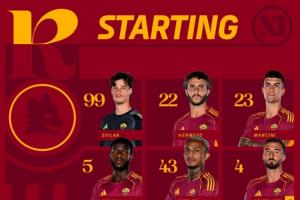 罗马首发:99-斯维拉尔、22-埃尔莫索、23-曼奇尼、5-恩迪卡、43-韦斯利、3-安吉利诺、4-克里斯坦特、17-科内、8-艾纳维、18-苏莱、21-迪巴拉