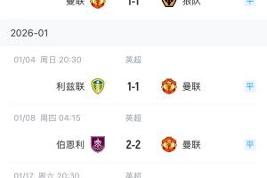 曼联近6场联赛3胜3平,是英超目前最长不败纪录。