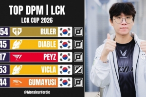 体育资讯1月26日讯 LCK发布杯赛分均伤害前五:Ruler Diable Peyz Vicla Gumayusi👊🏻