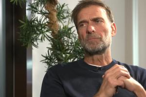 主持人:我很高兴能与这位最著名、最受欢迎的德国足球教练交谈。他曾是国际足联年度最佳教练,是一位真正的冠军缔造者。独一无二的尤尔根·克洛普。你好,尤尔根,见到你真高兴。
