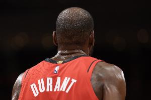 都别慌!杜兰特底角迎着防守命中三分球稳住局势