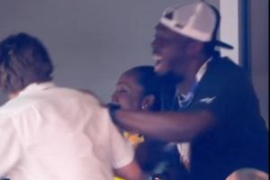 博尔特在看台上见证了塞维尔成为自己后首位夺得世锦赛男子百米金牌的牙买加选手。