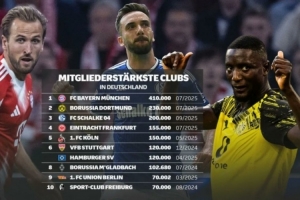 体育资讯9月15日讯 德甲官方统计了德国各俱乐部的注册会员数量,并列出榜单,拜仁41万名会员居首,多特23万名会员次席。