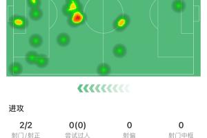 费兰本场数据:1进球1过人成功3错失进球机会2中框,评分7.1