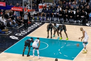想得太简单!阿门篮下捡板想直接扣被巴洛大帽按下