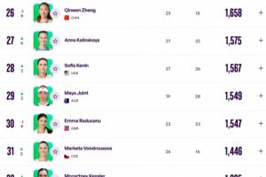 WTA排名:郑钦文澳网未参赛跌至第26,王欣瑜16强上升13位至第33