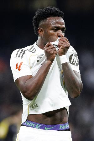 维尼修斯寻求伯纳乌球场观众的原谅并亲吻了队徽
