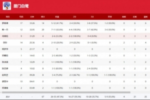 本场比赛,厦门女篮开局慢热的情况下通过三分首节领先,但次节突然断电半节仅得4分,半场被对手拉开近10分领先;下半场,进攻端还是略显急躁连续失误,被对手抓住机会扩大领先,末节虽然还是能拼能抢,但无奈对手牢牢掌握主动权,最终遗憾落败。球队数据统计上,厦门女篮本场失误控制不好,有多达20个,而对手则13个;前场篮板更是4-16比对手少12个。