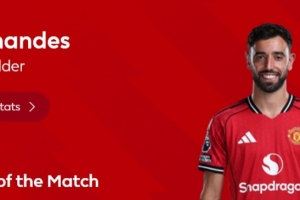 本场比赛B费破门锁定胜局,并且还送出5次关键传球,赛后他也当选英超官方球迷票选全场最佳球员。