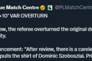 裁判现场宣布:经视频回放确认,哈兰德有一次鲁莽犯规,拉拽了索博斯洛伊的球衣。在这之前,索博斯洛伊也有一次拉人犯规,破坏了一次明显的得分机会。最终判罚曼城获得直接任意球,并向索博斯洛伊出示红牌。