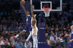 想得太简单!阿门篮下捡板想直接扣被巴洛大帽按下