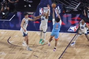 想得太简单!阿门篮下捡板想直接扣被巴洛大帽按下