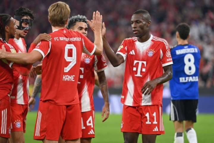 赛季前5场比赛,拜仁狂入19球,其中锋线4人包办了其中的18球: