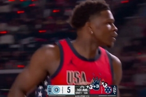 想得太简单!阿门篮下捡板想直接扣被巴洛大帽按下
