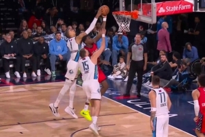 想得太简单!阿门篮下捡板想直接扣被巴洛大帽按下