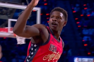 想得太简单!阿门篮下捡板想直接扣被巴洛大帽按下