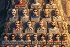 注:皮奥拉意甲官方总进球数为274球,本数据加上了1943-44和1944-45特殊时期两个赛季意大利顶级联赛数据,皮奥拉总共为317球,这个数据是IFFHS认可的版本。