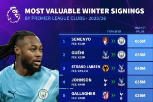 体育资讯2月16日讯 德国转会市场统计了今年各联赛新援的身价,并列出榜单。