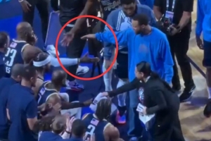 想得太简单!阿门篮下捡板想直接扣被巴洛大帽按下