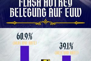 体育资讯2月19日讯 英雄联盟官推近日公布了欧洲服务器的闪现按键统计数据,结果显示:60.9%的玩家选择将闪现放在D键,胜率为50.0%;而39.1%的玩家坚持F闪,胜率则为50.1%。