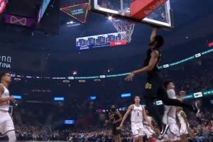 想得太简单!阿门篮下捡板想直接扣被巴洛大帽按下