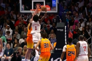 想得太简单!阿门篮下捡板想直接扣被巴洛大帽按下