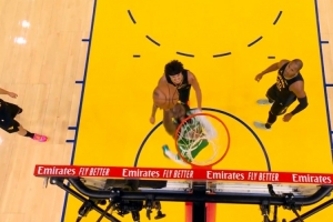 想得太简单!阿门篮下捡板想直接扣被巴洛大帽按下