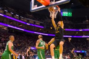 想得太简单!阿门篮下捡板想直接扣被巴洛大帽按下