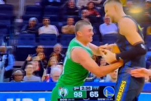 GIF-分差30+ 波尔津吉斯和普理查德争抢篮球 互不相让