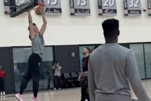 想得太简单!阿门篮下捡板想直接扣被巴洛大帽按下