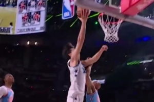 想得太简单!阿门篮下捡板想直接扣被巴洛大帽按下