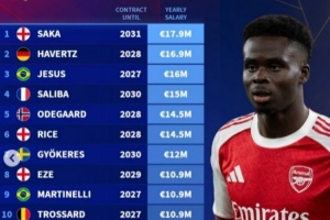 体育资讯2月20日讯 萨卡正式与阿森纳完成续约,德转也盘点了阿森纳队内年薪榜,其中萨卡位居第一,具体如下(合同期限,年薪):