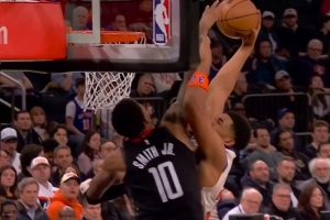 超高难度帅球!埃奇库姆弧顶迎着申京&小史密斯扑防轰压哨长两分