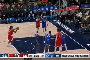夺回球权!阿门突破被德拉蒙德身后掏球出界 76人挑战成功