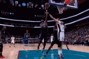 想得太简单!阿门篮下捡板想直接扣被巴洛大帽按下