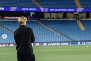 德布劳内晒出赛前在伊蒂哈德踩场的个人动态,其中一张站在球场的独照让人感慨。