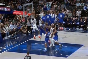 想得太简单!阿门篮下捡板想直接扣被巴洛大帽按下
