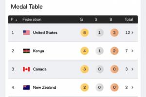 最新的世锦赛奖牌榜,美国8金1银3铜居首,肯尼亚4金1银2铜第二。中国在女子链球(赵杰和张家乐)项目斩获1银1铜、在男子跳远(石雨豪)项目斩获铜牌,1银2铜3块奖牌排第19。巴林1银1铜、韩国1银、东道主日本1铜上榜。