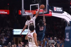 想得太简单!阿门篮下捡板想直接扣被巴洛大帽按下