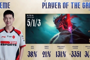 体育资讯2月28日讯 在刚刚结束的TES对阵WE的BO5比赛中,Creme永恩打出5/1/3战绩,斩获TES对阵WE第一局MV。