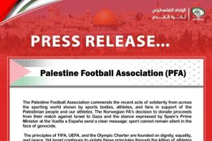 巴勒斯坦足协重申坚定立场:必须对以色列实施制裁,暂停其国家队及运动员参加国际赛事资格,直至其针对巴勒斯坦体育界的暴行在内的所有罪行终结。国际体育界有道义有责任立即采取行动。