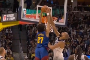 想得太简单!阿门篮下捡板想直接扣被巴洛大帽按下